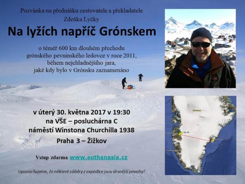 Srdečně Vás zveme na přednášku pana Zdeňka Lyčky "Na lyžích napříč Grónskem", která se koná v úterý 30. 5. 2017 v 19.30 na VŠE v Praze v posluchárně C.