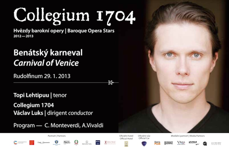 Jméno Antonia Vivaldiho je dnes známé především díky instrumentálním koncertům a pověsti obdivovaného houslového virtuóza. Ve své době byl však Vivaldi velmi oblíbeným operním skladatelem a při bližším seznámení s hudbou jeho oper budeme i dnes unešeni nekonečnou melodickou invencí a instrumentační vynalézavostí jejího tvůrce. Pestrou paletu barev benátského karnevalu nám předestře jeden z nejvýznamnějších představitelů mladé generace, finský tenorista Topi Lehtipuu, jehož jméno je ozdobou každé světové scény.