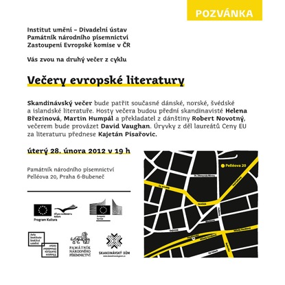 Srdečně Vás zveme na skandinávský večer z cyklu Večery evropské literatury, který bude tentokrát patřit současné dánské, norské, švédské a islandské literatuře. Cyklus pořádají Institut umění, Památník národního písemnictví a Zastoupení Evropské komise v ČR ve spolupráci s Českou kanceláří programu Culture s cílem představit současnou evropskou literaturu v širších souvislostech prostřednictvím debatních večerů věnovaných laureátům Ceny Evropské unie za literaturu.